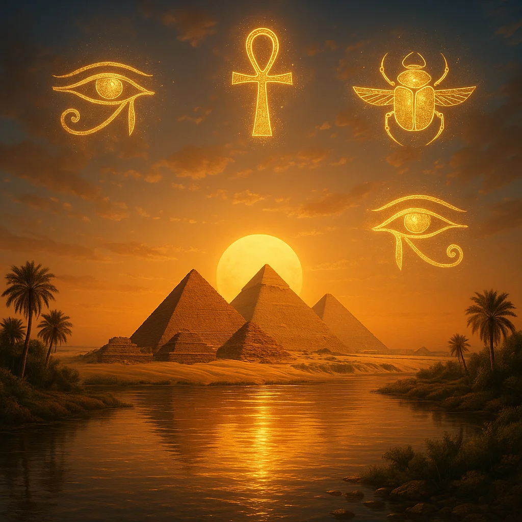 • Simbolurile sacre (ankh, scarabeu, ochiul lui Horus) erau sigilii energetice care protejau și vindecau.